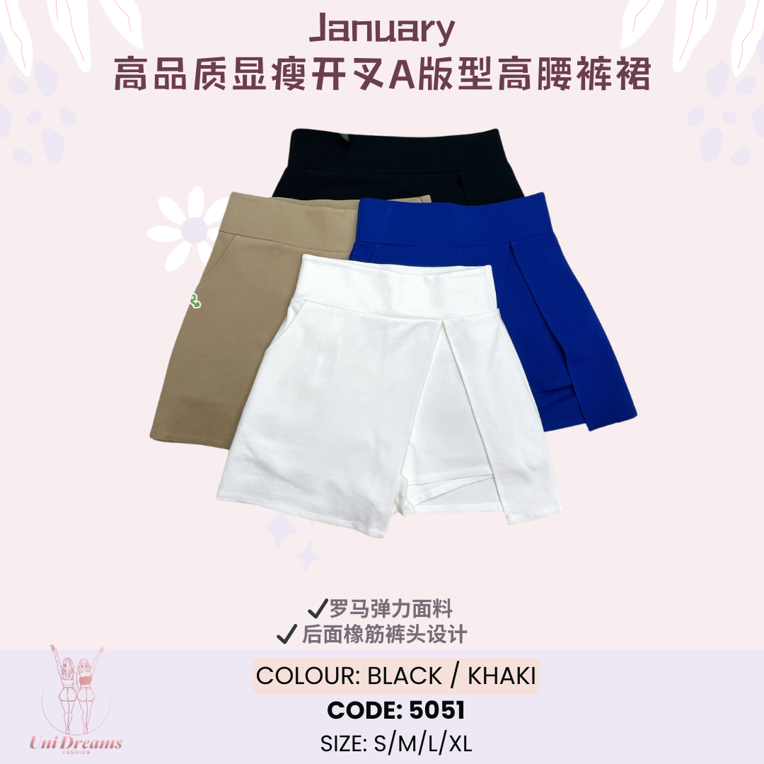5051 January高品质显瘦开叉A版型高腰裤裙