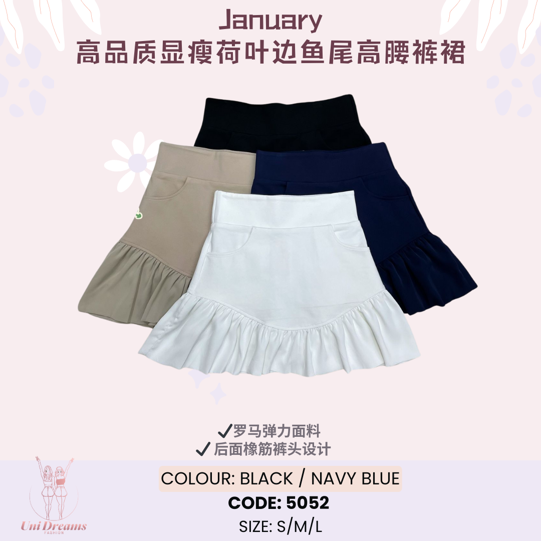 5052 January高品质显瘦荷叶边鱼尾高腰裤裙