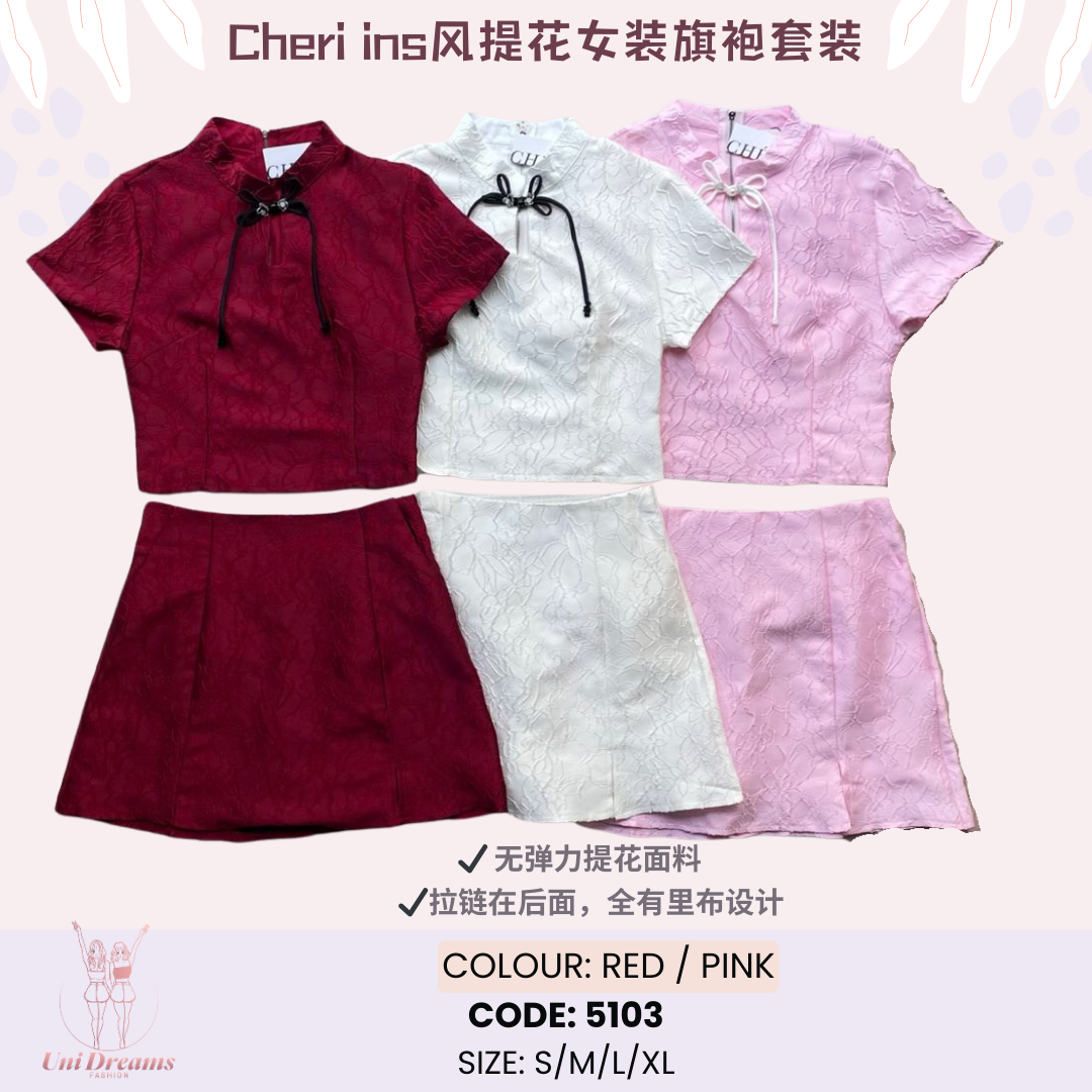 5103 (Cheri Brand) INS Fashion Jacquard Cheongsam Two-Piece Set