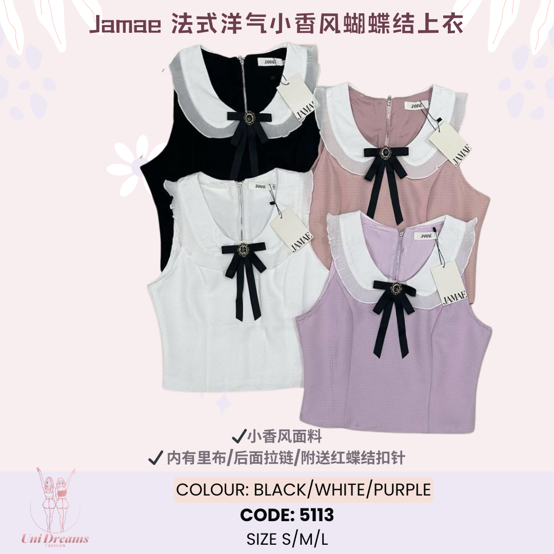 ✨❤️ 新品上架 | 爆款推荐 ❤️✨ 💖 Jamae 法式洋气小香风蝴蝶结上衣 CODE: 5113 原价 RM58 尺码参考: S: B82–86cm|L45cm M: B88–92cm|L46cm L: B94–98cm|L47cm 颜色选择: Black / White / Purple ✨ 商品亮点 ✅ 小香风无弹面料,质感优雅、版型更挺 ✅ 后方高质量拉链,穿脱轻松不夹衣 ✅ 上衣内有里布,不扎肤、穿着更舒服 ✅ 附送蝴蝶结扣针,精致法式小心机,甜美度瞬间UP ✅ 拼接雪纺娃娃领设计,提升立体度与高级感,显脸小又减龄