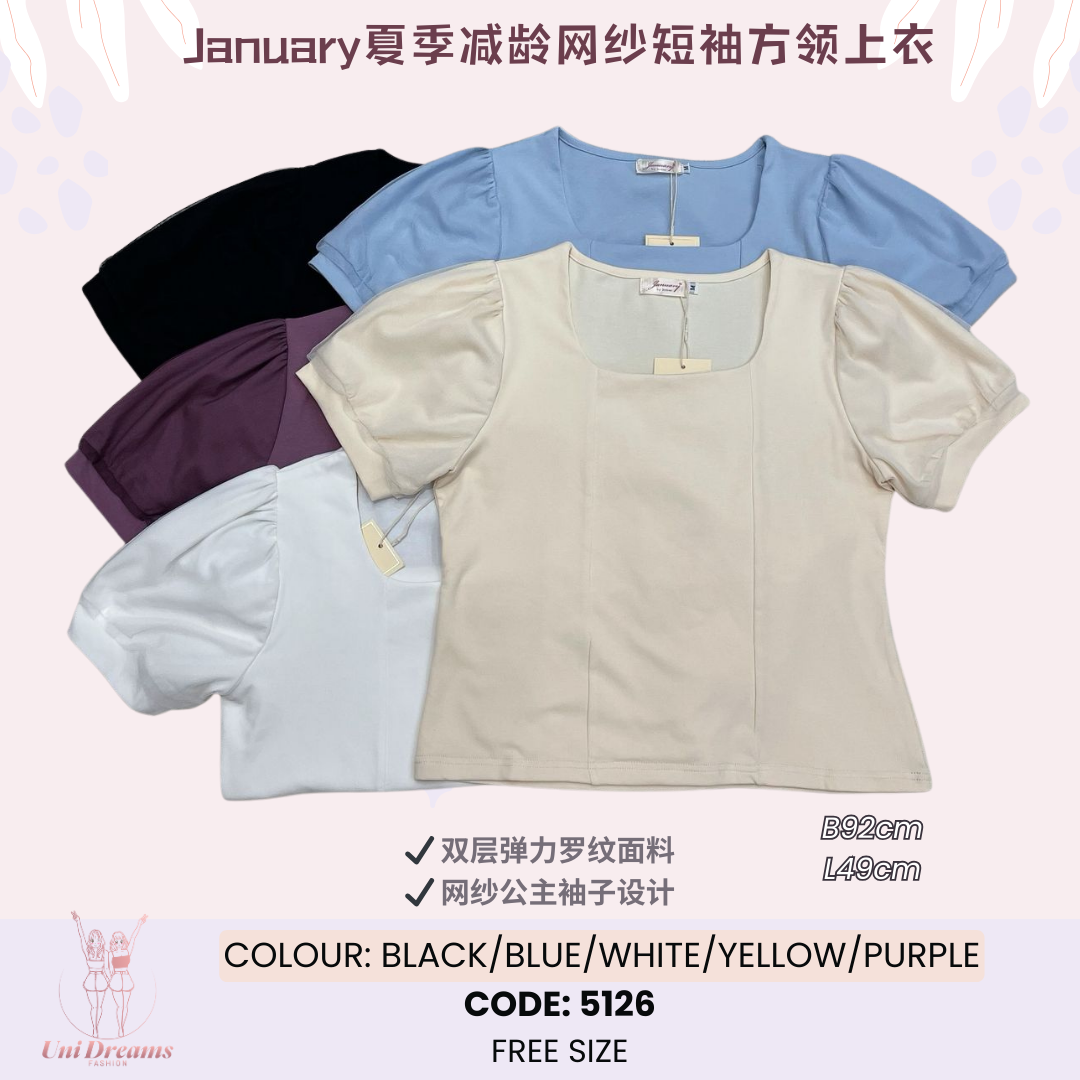 ✨❤️ 新品上架 | 爆款推荐 ❤️✨ 💖 January 夏季减龄网纱短袖方领上衣 💖 CODE: 5126 原价 RM42 ➡️ 福利价 RM39 Free Size: B92–100cm|L49cm 颜色选择: Black / Blue / Purple / White / Yellow ✨ 商品亮点 ✅ 双层弹力螺纹面料,质感细腻舒适 ✅ 网纱公主袖设计,甜美减龄、提升气质 ✅ 方领剪裁,修饰锁骨线条 ✅ 百搭款式,单穿或内搭都轻松驾驭