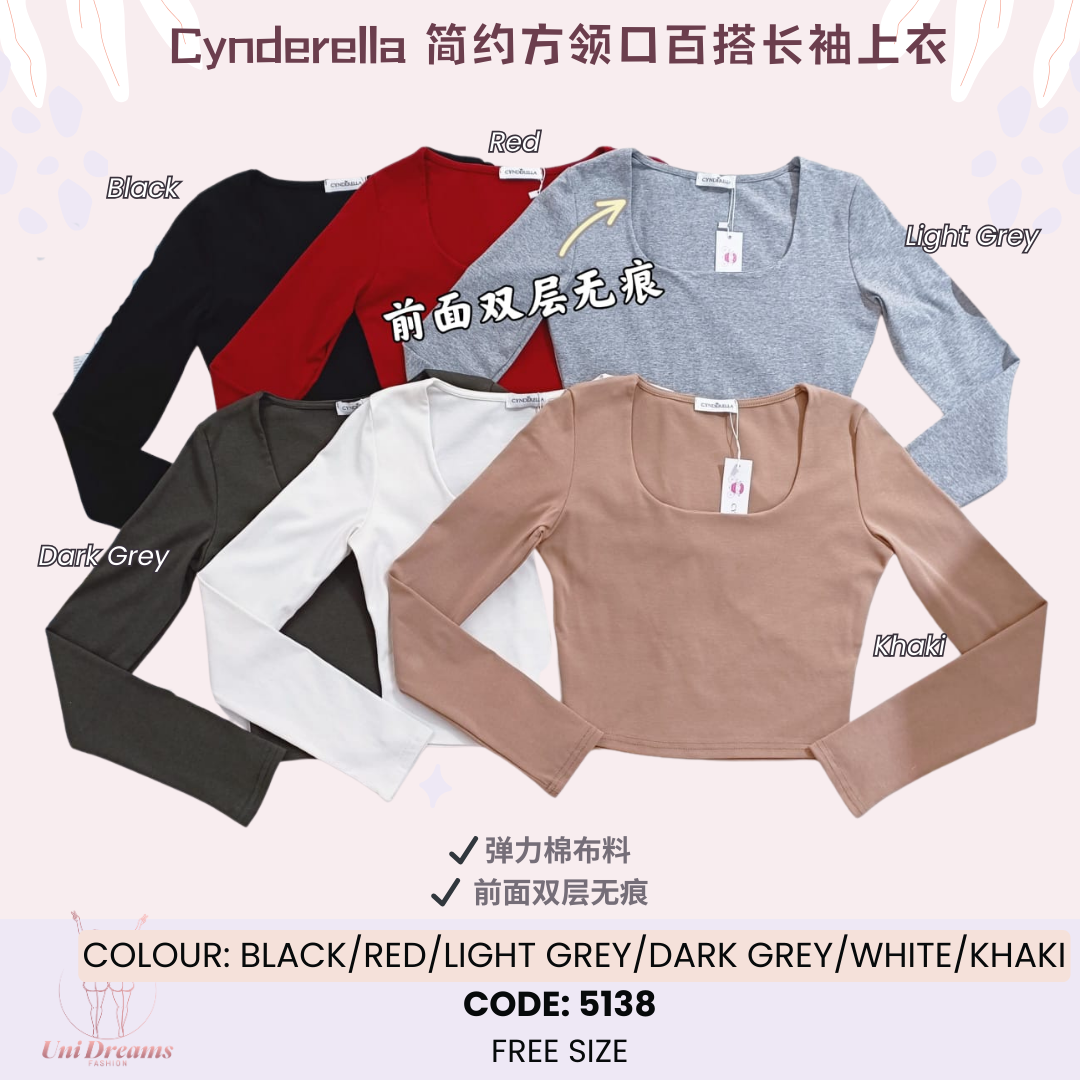❤️ 新品上架 | 爆款推荐 ❤️✨ 💖 Cynderella 简约方领口百搭长袖上衣 CODE: 5138 原价 RM39 颜色选择: Black / Red / Light Grey / Dark Grey / White Free Size: B80–92cm|L39cm ✨ 商品亮点 ✅ 弹力棉质面料,亲肤柔软、透气又舒适 ✅ 前片 双层无痕设计,不显内衣痕、穿着更安心 ✅ 气质 四方领口,显瘦显脸小,单穿内搭都百搭