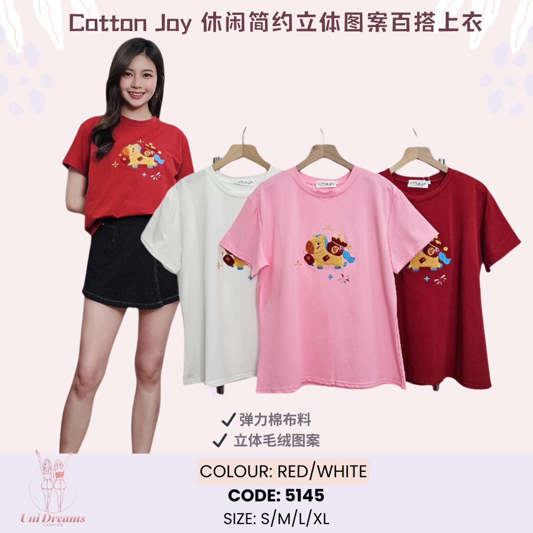 ✨❤️ 新品上架 | 爆款推荐 ❤️✨ 💖 Cotton Joy 时尚休闲简约立体刺绣百搭上衣 💖 📌 CODE: 5145 原价 RM39 🎨 颜色选择: Red / White 📏 尺寸参考: S:B88cm|L57cm M:B94cm|L59cm L:B100cm|L61cm XL:B106cm|L63cm ✨ 商品介绍 ✅ 弹力棉质面料 — 亲肤柔软不刺痒、透气度高,穿一整天都舒适不闷 ✅ 立体精致刺绣卡通图案 — 可爱又不浮夸,质感提升、细节满分 ✅ 简约百搭版型 — 单穿就好看,与短裤/牛仔裤随便搭都能出门 ✅ 微宽松剪裁 — 修饰手臂小腹、穿上更显瘦更自在 ✅ 耐洗不易变形 — 日常上班、逛街、接小孩都能轻松穿