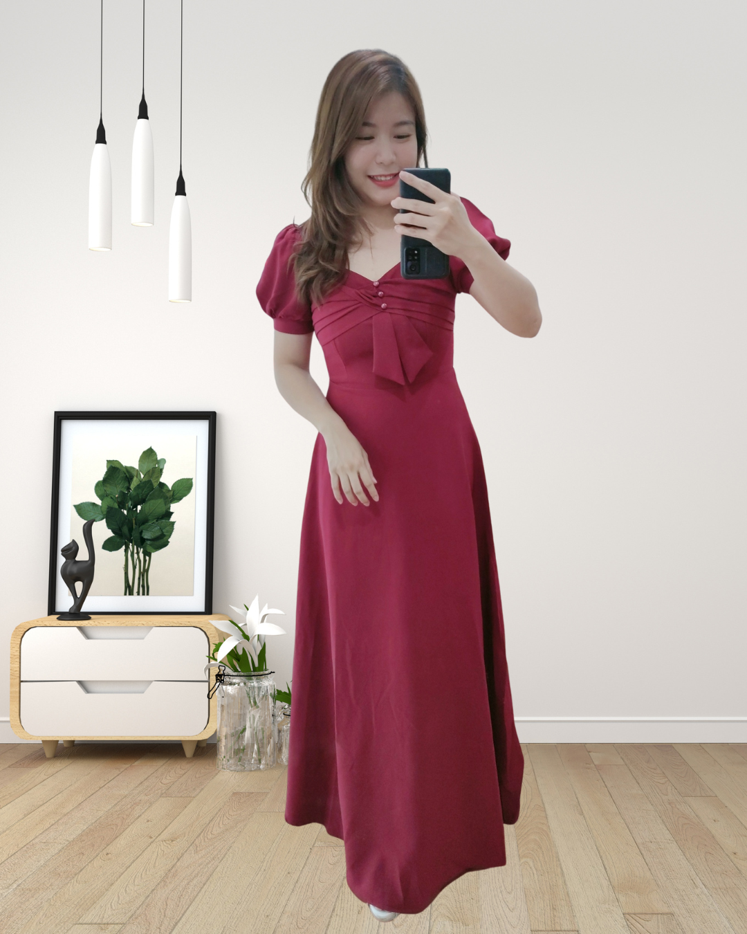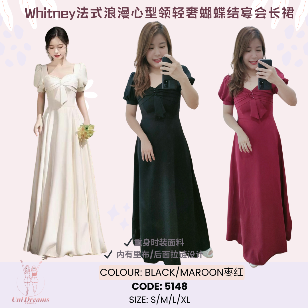 ✨❤️ 新品上架 | 爆款推荐 ❤️✨ 💖 Whitney 法式浪漫心形领轻奢蝴蝶结宴会长裙 💖 📌 CODE: 5148 原价 RM98 ➡️ 福利价 RM95 🎨 颜色选择: Black / Maroon(枣红) 📏 尺寸参考: S:B80–86cm|W66–70cm|L142cm M:B84–90cm|W71–75cm|L142cm L:B88–94cm|W76–79cm|L143cm XL:B92–98cm|W80–84cm|L144cm 臀围无限制,任何臀围都能穿 ✨ 商品亮点 / 必买理由 ✅ 弹力重身时装面料 — 上身显高贵又不显露身材痕迹,垂坠感超美 ✅ 内有里布 — 舒适不透、穿着更安心 ✅ 后方隐形拉链设计 — 平顺贴身、穿脱方便 ✅ 浪漫心形领口+精致蝴蝶结 — 修饰脸型与肩颈线,一穿就很法式优雅 ✅ 公主袖设计 — 微蓬袖型修饰手臂,显瘦又更显气质
